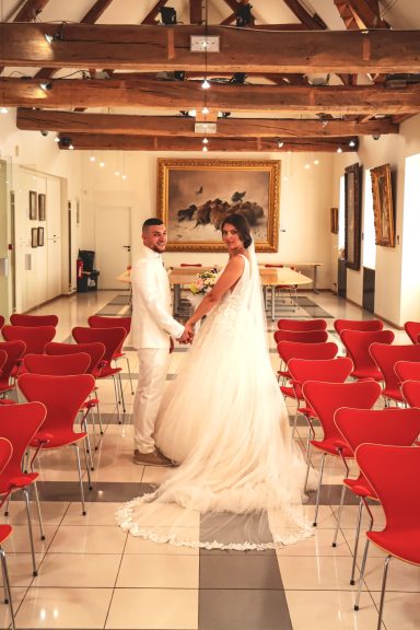 Je me déplace gratuitement dans tout le Val-d’Oise et les départements voisins. Pour les mariages plus éloignés, un forfait déplacement est ajouté sur devis.